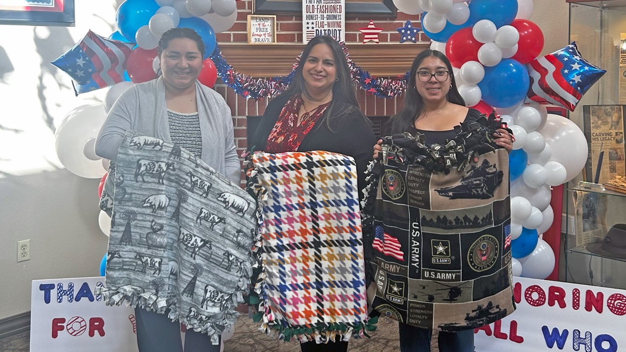 McAllen volunteers delivered their annual no-sew blankets to the veterans’ nursing home, a tradition they work on from summer through November. Each blanket is handmade by team members and personally delivered as a gesture of gratitude and support for local veterans.